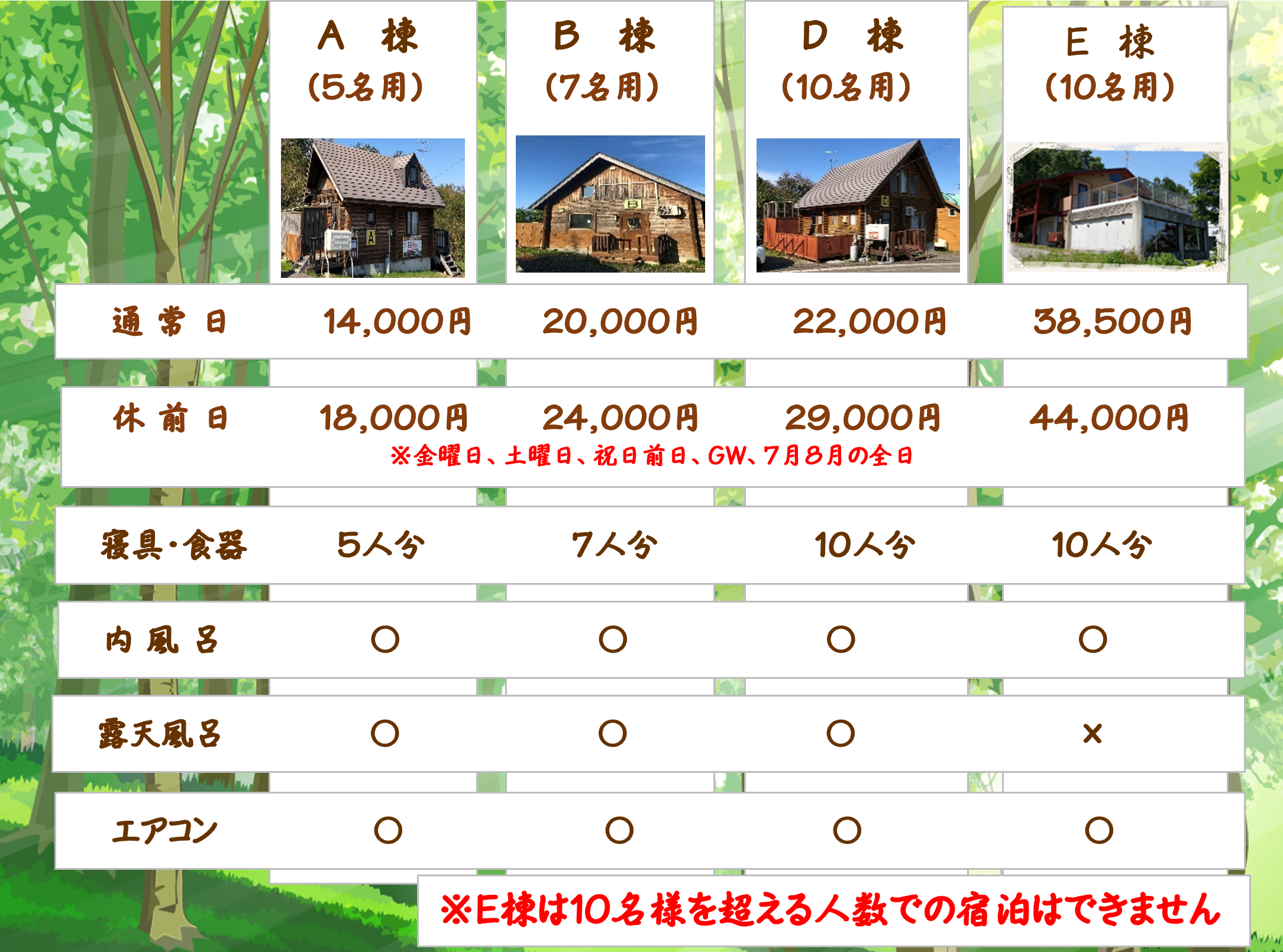 GW, 金曜日、7月8月の全日、は休前日料金とさせていただきます